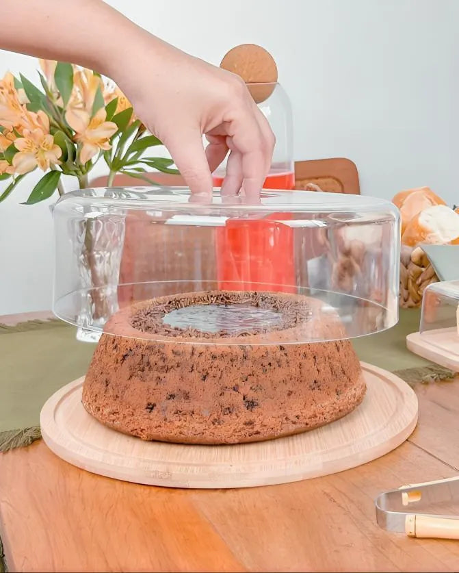 Boleira Redonda Com Tampa De Bambu, 28x28x9cm