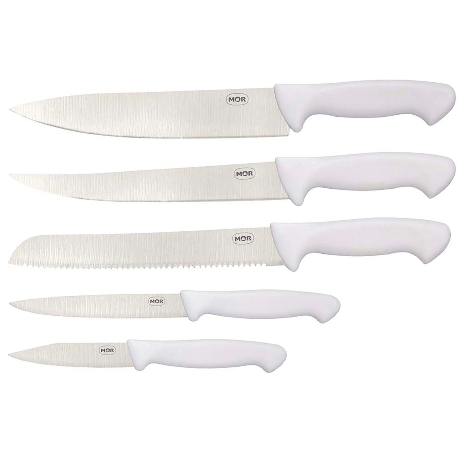 O Conjunto do Assador da Mor vai muito além do churrasco. Com cinco tipos diferentes de faca: para pão, para lardear, para desossar, para legumes e carne, este conjunto é a praticidade que faltava na sua cozinha. Produzidos com lâmina em aço inoxidável, que confere maior durabilidade e resistência, e cabos brancos em polipropileno, práticos de higienizar e firmes ao manusear. É um produto que não pode faltar na casa dos apreciadores de uma boa gastronomia.