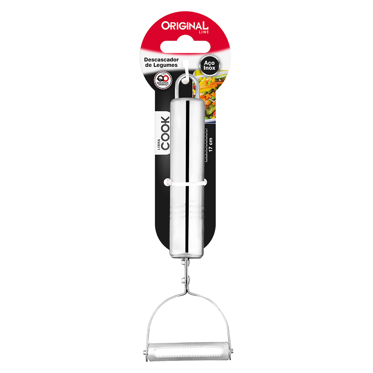 Descascador de Legumes Original Ferramenta essencial para a cozinha moderna, este descascador combina precisão e elegância em seu design refinado. Com lâmina afiada e ergonômica, remove a casca de legumes e frutas com eficiência, preservando a máxima quantidade de polpa. Ideal para quem valoriza qualidade e praticidade no preparo de refeições. Durável e fácil de limpar, torna-se um aliado indispensável para cozinheiros que apreciam excelência culinária.