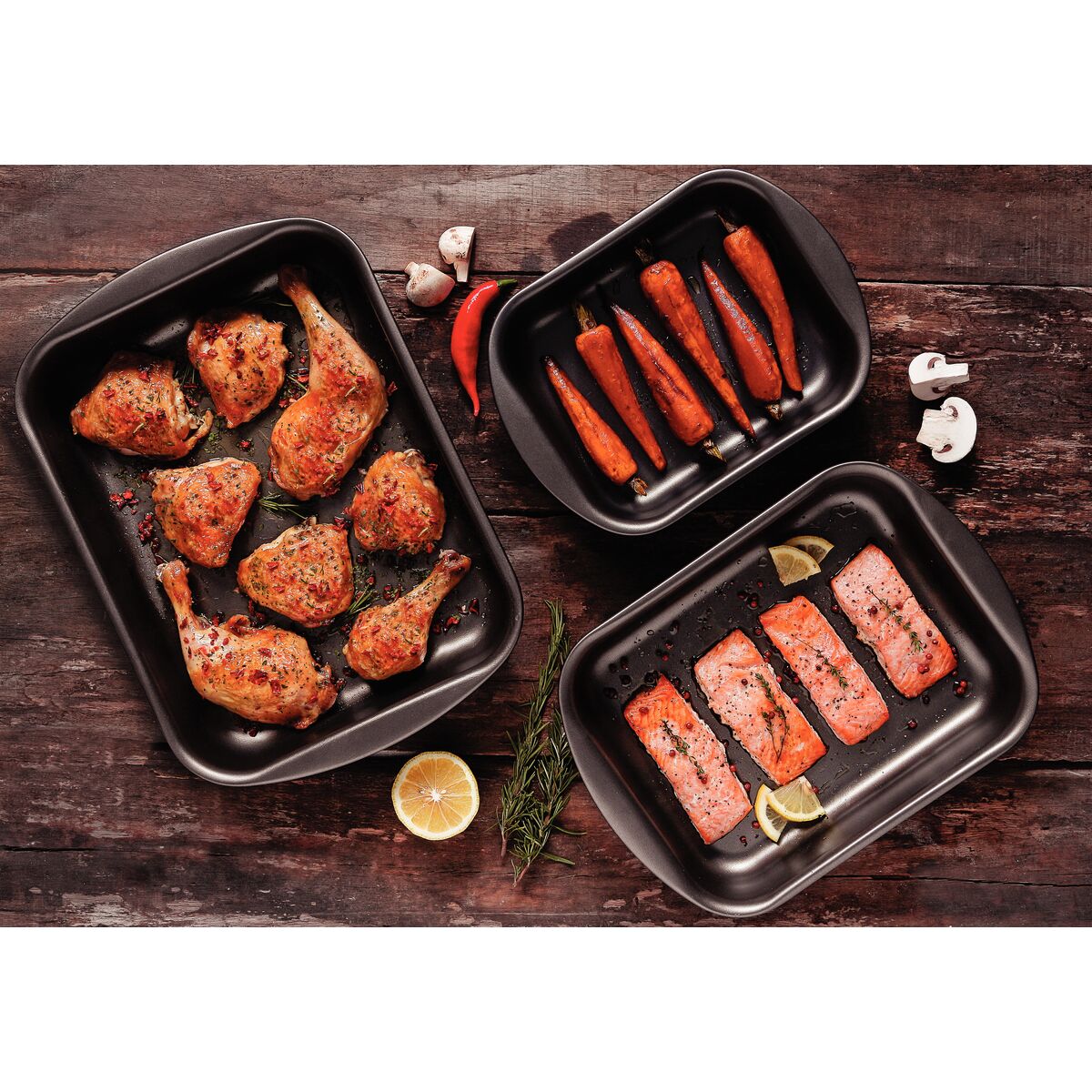 Conjunto de três assadeiras Tramontina Brasil, fabricadas em alumínio de alta qualidade com revestimento antiaderente Starflon Max. O acabamento em grafite oferece elegância e durabilidade, facilitando o preparo de bolos, biscoitos e assados sem aderência. Ideal para cozinhas modernas que valorizam funcionalidade e design. Resistentes ao calor e fáceis de limpar, essas assadeiras garantem resultados profissionais em cada uso.