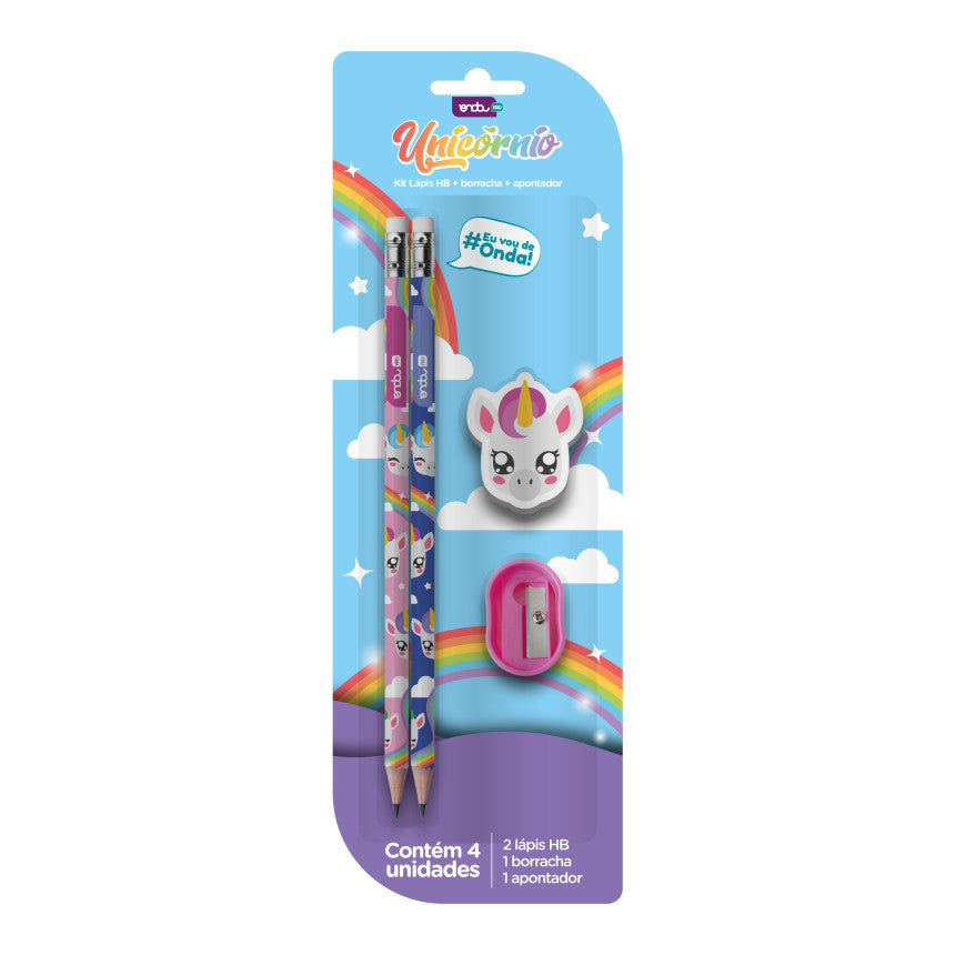 Lápis hb grafite kit unicórnio